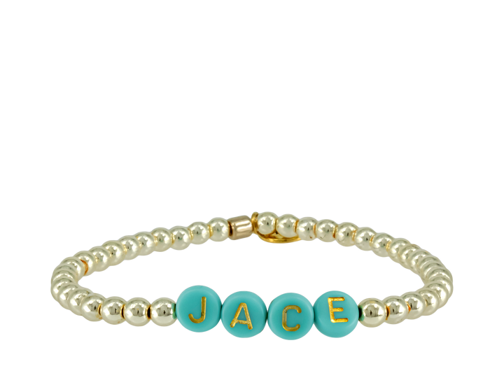 - Build our best-selling Custom Name J bracelet, starting with the name of your choice and your letter color, all on a dainty 4mm gold bead.