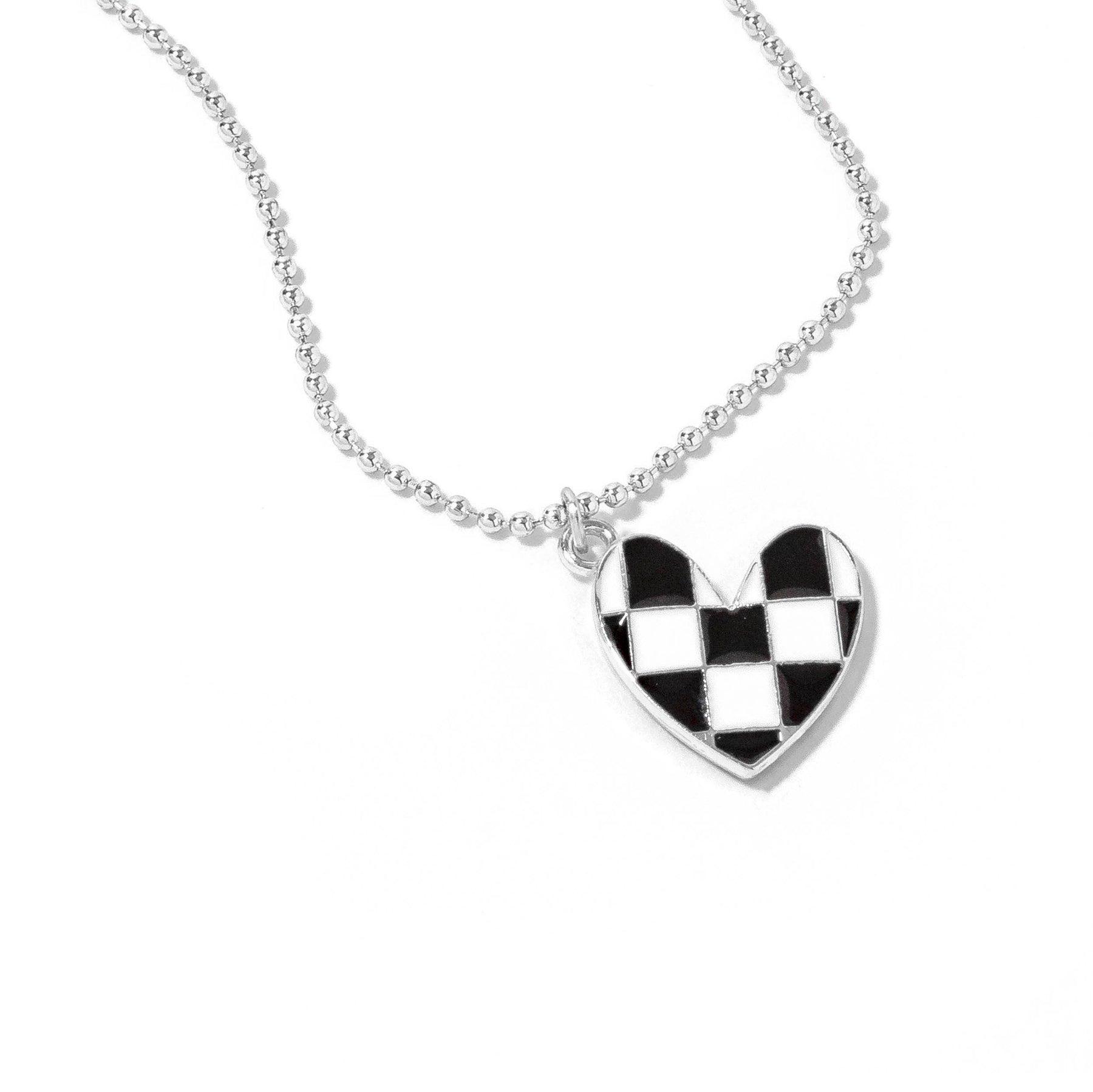 • Wear your heart on your sleeve with the Checkered Heart Brad! This fun, dainty necklace features a checkered black and white heart charm that's perfect for game day. Look cute, stylish, and oh-so-festive in a timeless piece you'll never want to take off!