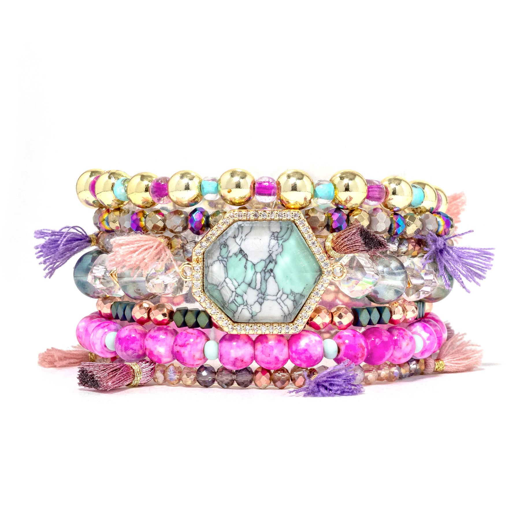 • Layer on the fun with this eye-catching bracelet stack featuring playful tassel accents that dance with every move. Mix, match, and customize your wrist with vibrant pieces that work beautifully together or shine solo.