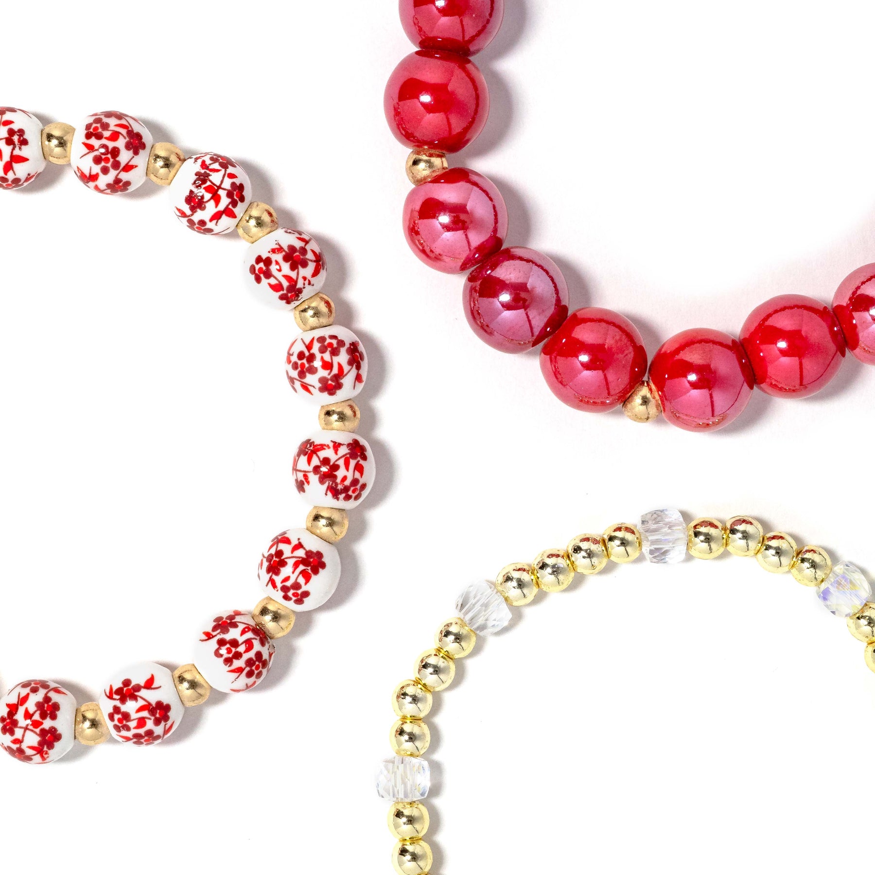 The Poppy Stack is your new essential—a show-stopping trio featuring hand-painted floral beads in a gorgeous red that demands attention. Each bead is uniquely detailed with delicate botanical patterns, making every stack feel like wearable art.