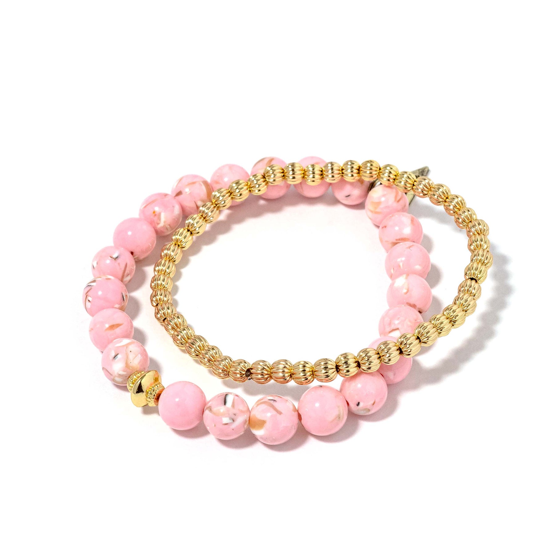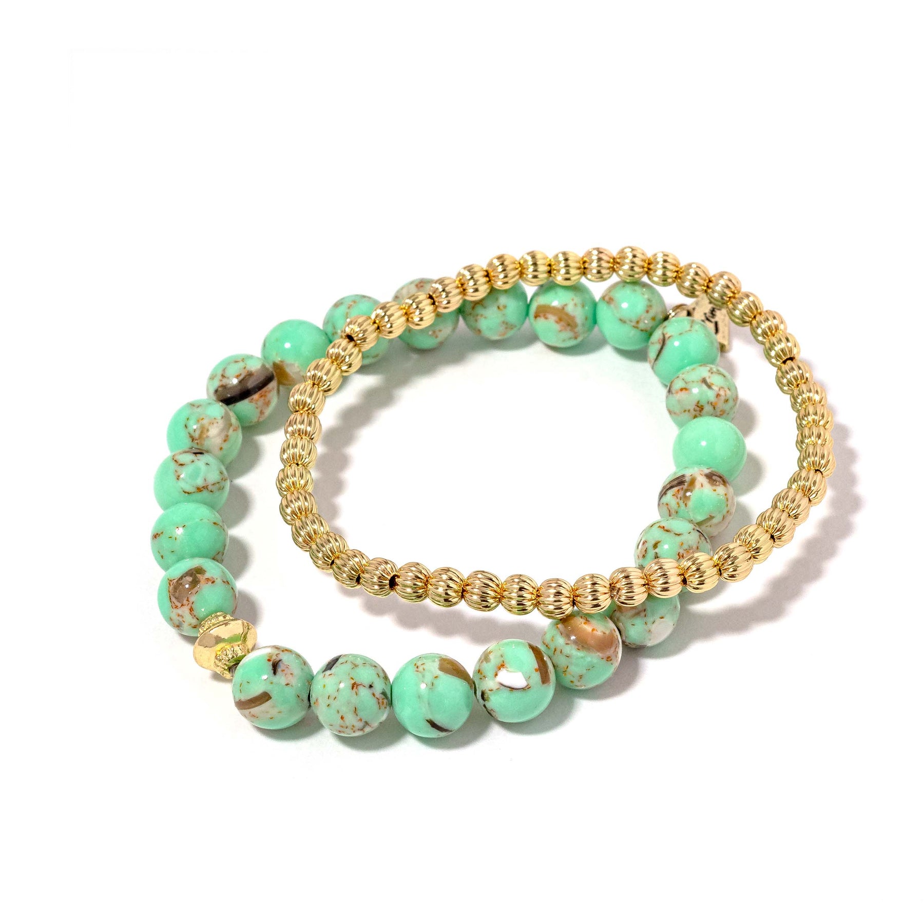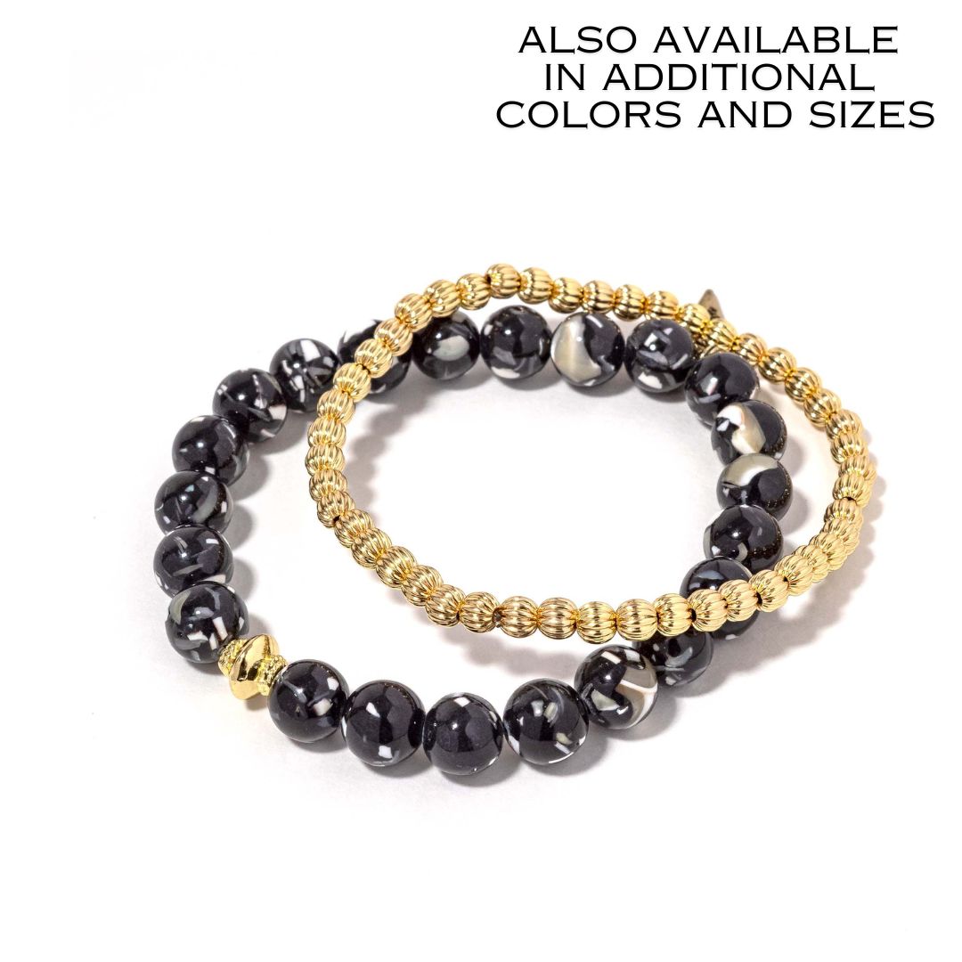 - Elevate your style with our Globe 2pc Stack. This stunning stretch bracelet stack features a subtle yet elegant color palette that will add a touch of sophistication to any outfit.
