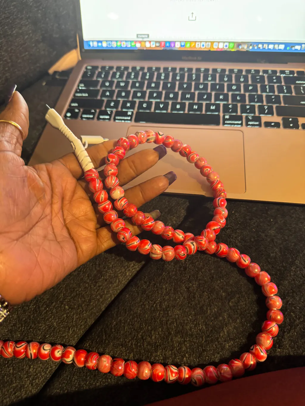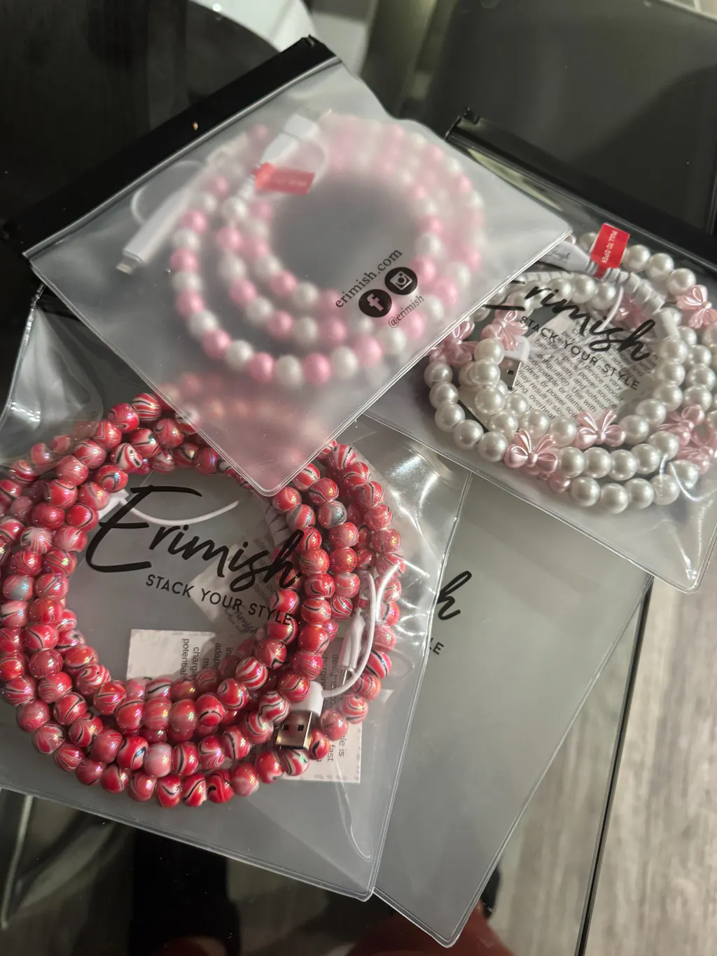 Beaded Phone Charger Marble Black