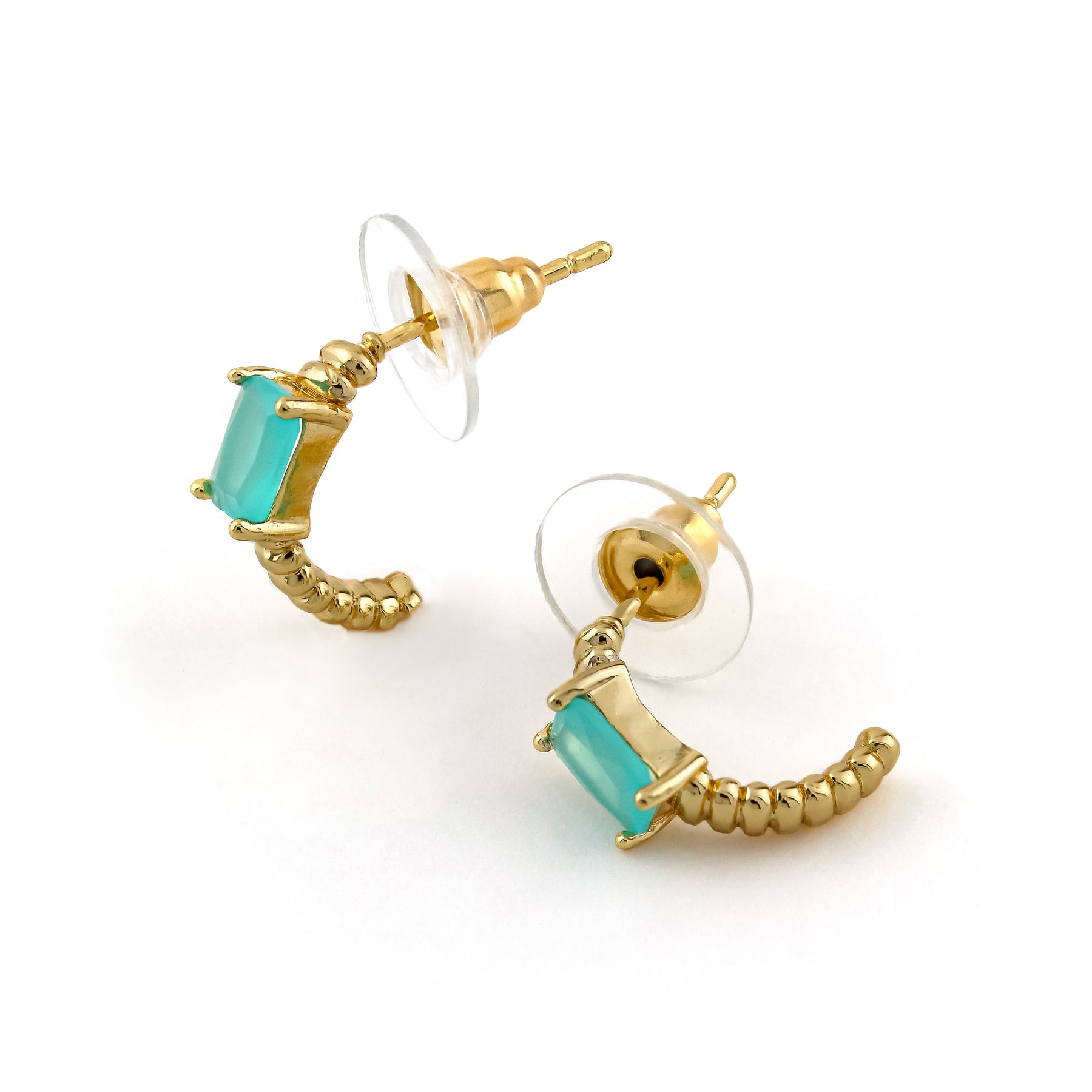 - These darling huggie earrings are the perfect addition to any outfit. With rectangular accent stones, these earrings add a pop of color and fun to your look. Say goodbye to boring earrings and hello to these stylish Cayo Earrings!