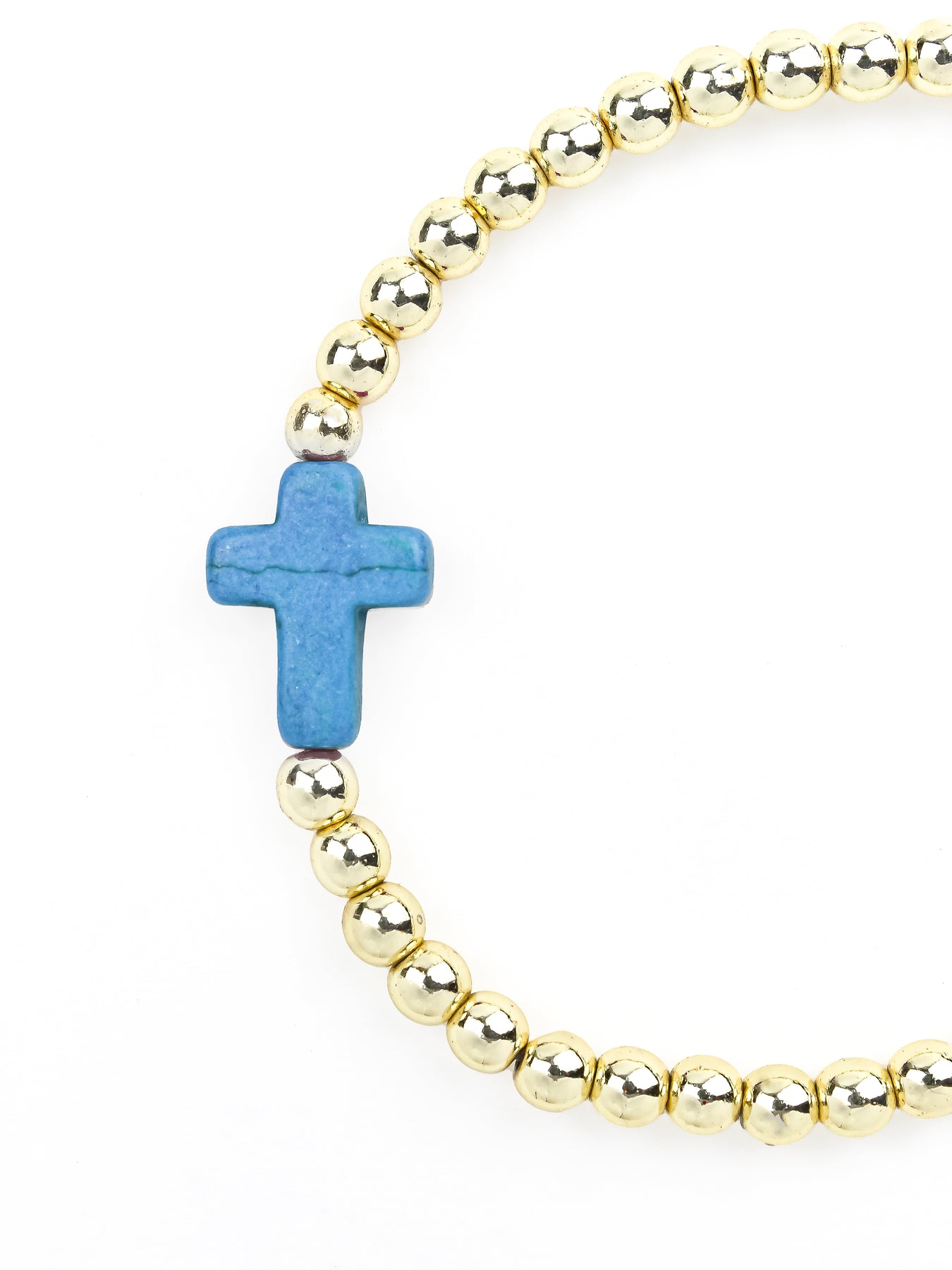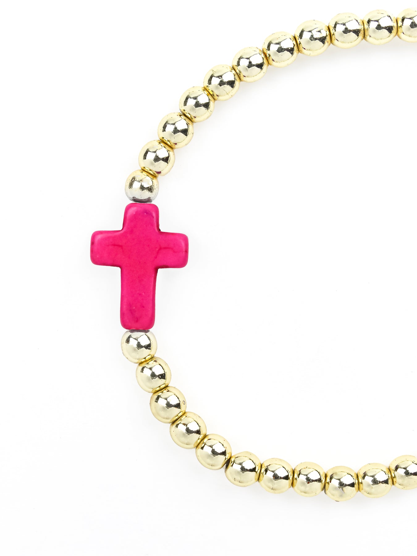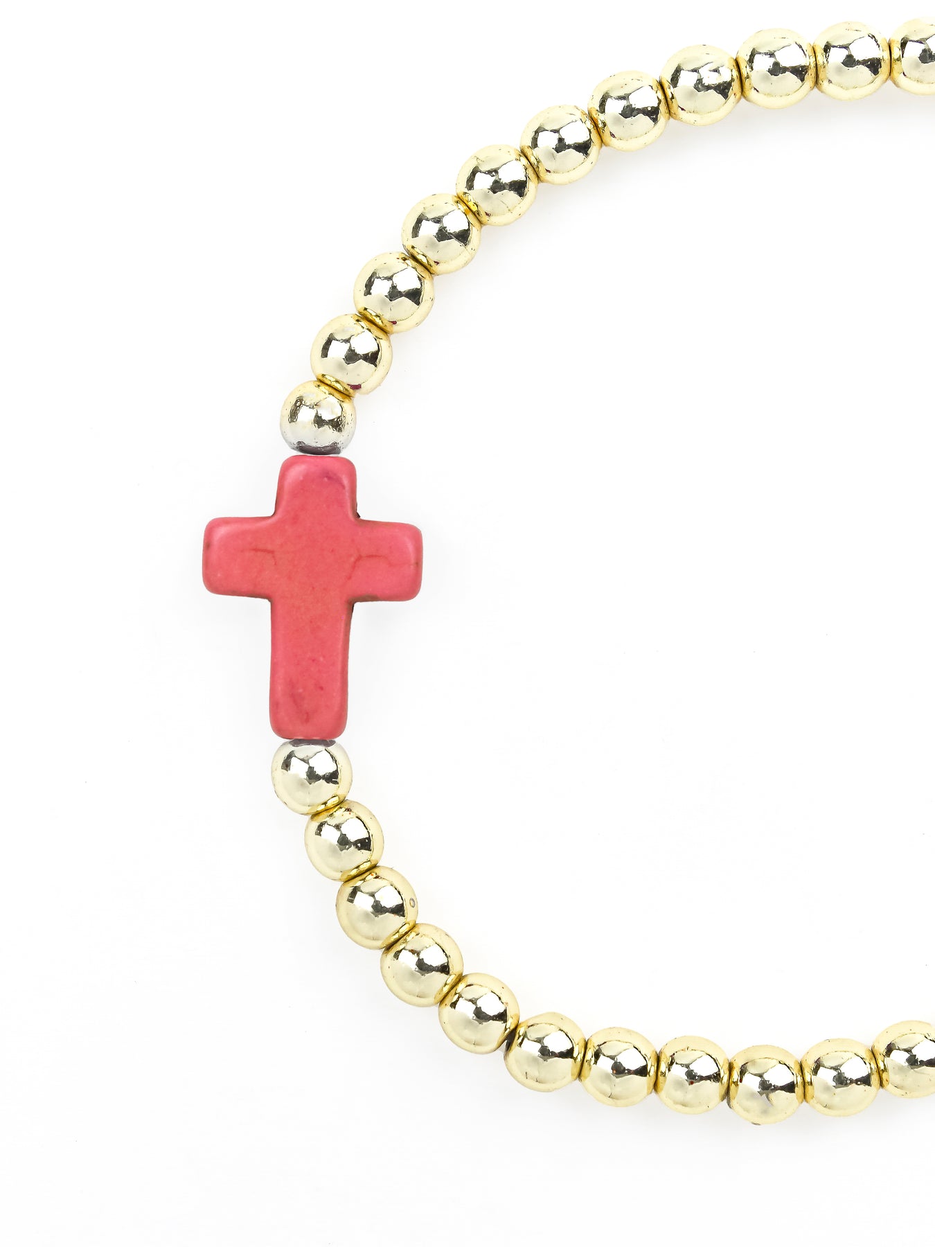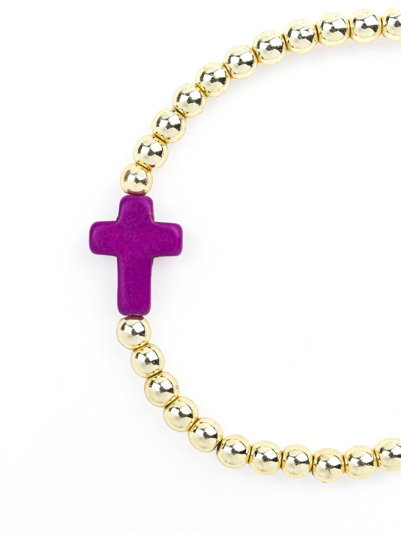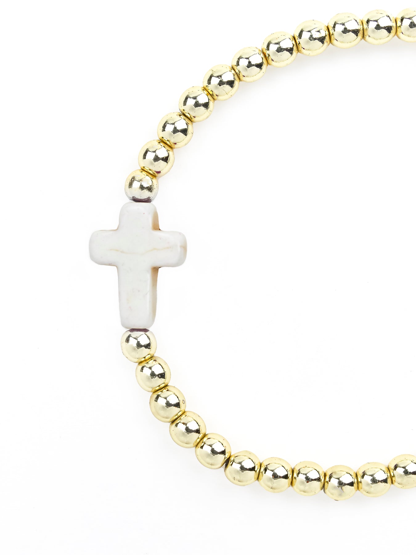 - Beautifully dainty, the cross bracelet brings all the charm. The classic design made with gold plated beads and a black cross is perfect for everyday wear and will no doubt become a timeless piece in your collection.