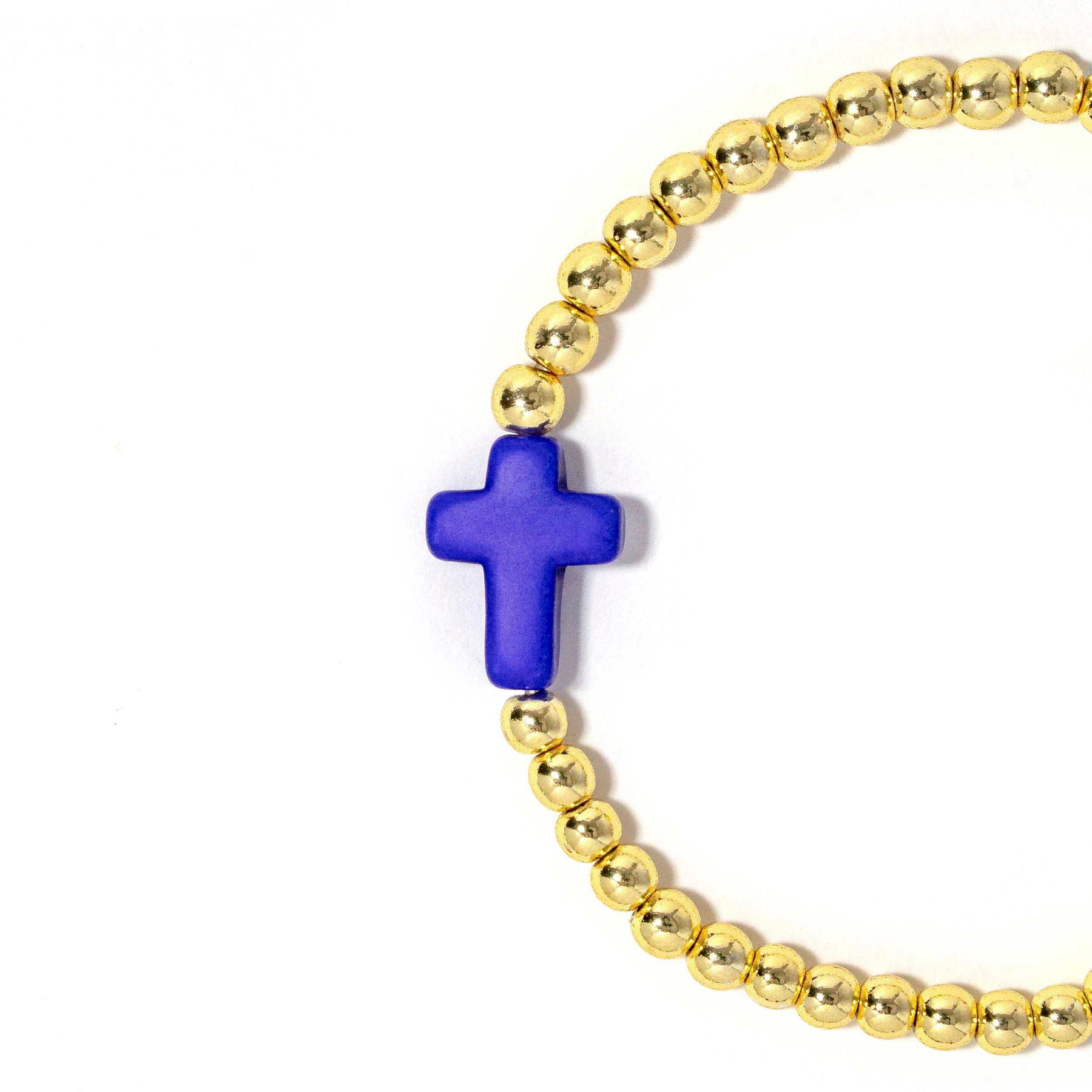 • Beautifully dainty, the cross bracelet brings all the charm. The classic design made with gold plated beads and a black cross is perfect for everyday wear and will no doubt become a timeless piece in your collection.